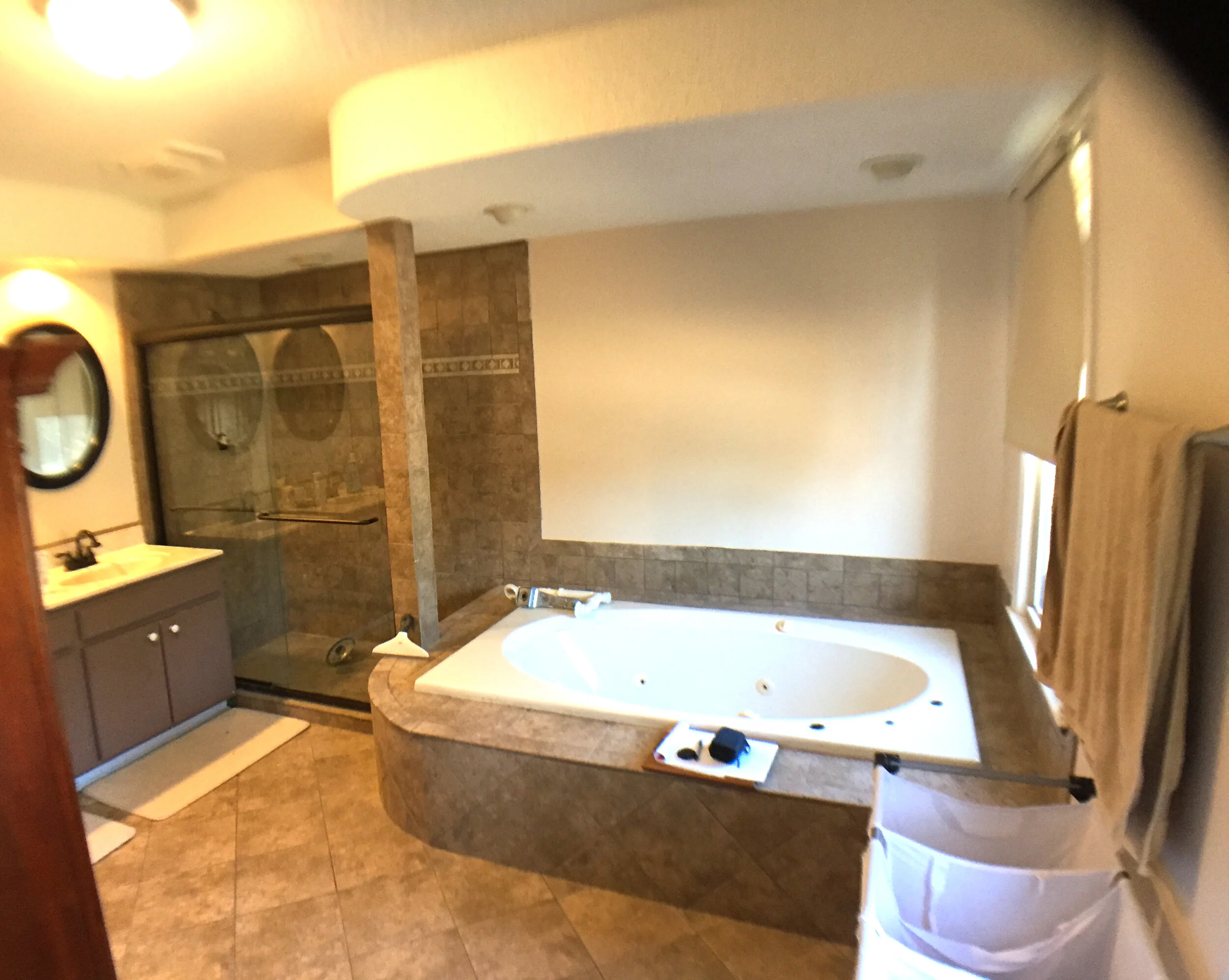 Complete renovation of this outdated bathroom. All new fixtures, shower, free standing tub & flooring brought this space to life!